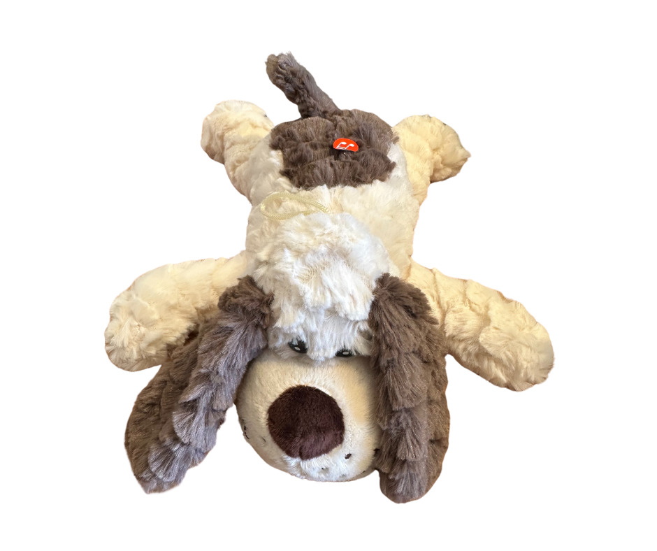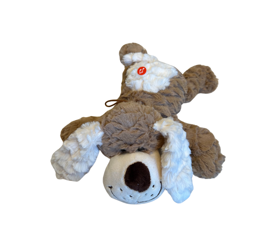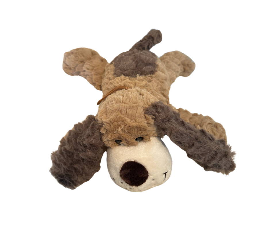 Denne store og herlige kosehunden er alltid klar for en klem! Med myk, fluffy pels i krem og brune toner, lange ører og et stort, vennlig fjes, er den den perfekte kosekameraten for både små og store. Den flate og myke formen gjør den også super som pute – perfekt til lesekroken, reiser eller rolige kvelder i sofaen.